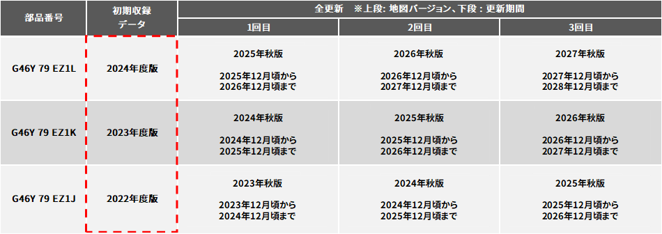 全更新はそれぞれ次年度の地図データ配信開始まで、更新が可能となります。